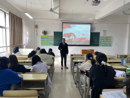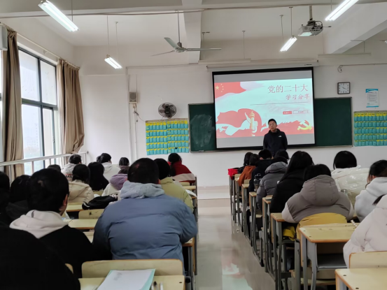 为将党的二十大精神传播到学生中,书记带领辅导员团队下到班级,开展党的二十大主题宣讲活动,辅导员用接地气的语言,通俗易懂的表达,就二十大报告中过去5年工作、新时代10年的伟大变革、马克思主义中国化时代化、中国式现代化等方面,对党的二十大精神进行系统解读和深入阐释。同时结合实际,开展相应的征文、微团课等各类文体活动,进一步加深学生对党的二十大精神的学习理解,不断拓展学习深度,让党的二十大精神学习走“新”更走“心”。