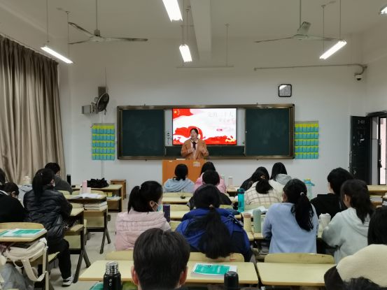 书记作为党员的一面旗帜,显得至关重要,学院以党建为引领,抓住党支部书记这一“关键少数”,形成“头雁效应”,开展党的二十大宣讲活动,学院党总支副书记罗志红给学院全体教职工以及学生入党积极分子讲党课,解读《中国共产党章程》的重要修改。教工党支部书记胡征、学生党支部书记叶燕平结合个人学习体会,带领学院教职工深入学习解读党的二十大报告,在学习中不断增强政治判断力、政治理论领悟力、政治执行力,切实增强“四个意识”、坚定“四个自信”,忠诚拥护“两个确立”,坚决做到“两个维护”。
