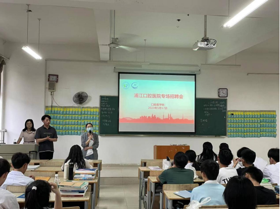 浦江口腔医院代表、我校优秀毕业生刘长志为前来参加招聘会的老师和同学介绍了浦江口腔医院的发展现状、行业地位、发展前景、薪资待遇等方面内容。宣讲结束后刘长志学长还对学生提出的问题进行了解答,现场气氛热烈。