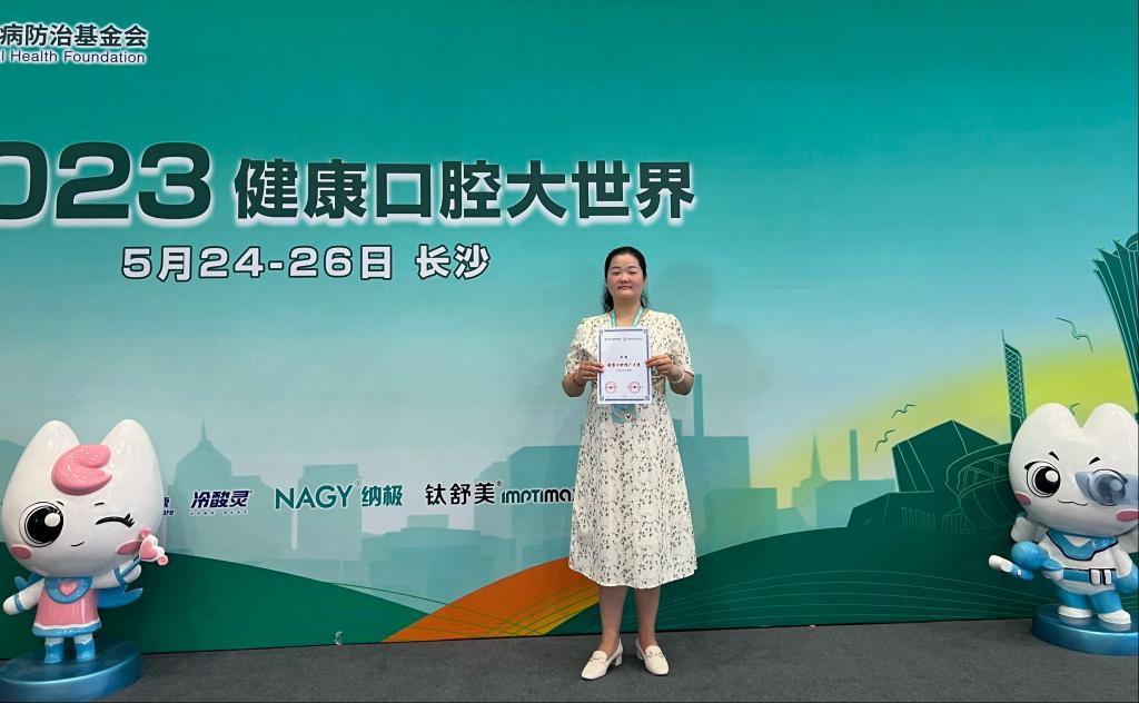 为深入贯彻《健康口腔行动方案(2019-2025 年)》有关要求,实施口腔健康能力提升行动,中国牙病防治基金会于5月24日-26日在湖南省长沙国际会展中心举办“首届中国牙病防治技能发展大会暨 2023 健康口腔大世界”。会议普及口腔健康知识和口腔清洁护理技能,规范口腔预防基本操作,以预防为主,防治结合,对口腔疾病实现早期干预,达到大众自主自律、健康生活的目的。开元官网梁敏老师通过系列培训,经过严格的理论和技能考试,最终以优异的成绩通过考核,成功取得了由中国牙病防治基金会颁发的“健康口腔推广大使(2023-2026年)”称号。