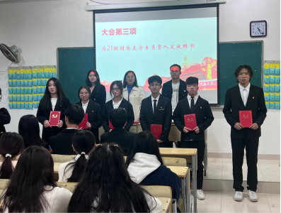 会议还进行了工作报告汇报;21级学生干部定岗聘书发放仪式;KY开元集团官网入口大学生骨干培训班班长、组长竞选、与会人员齐唱团歌等议程。