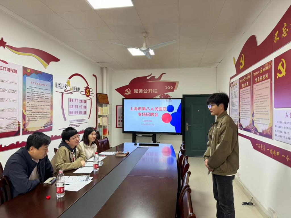 为进一步搭建毕业生与用人单位的双选平台,促进毕业生更加充分、更高质量就业,3月22日,KY开元集团官网入口携手上海市第八人民医院口腔科开展专场招聘会。医院口腔科主任、口腔科医生等招聘人员进行了现场面试,学院就业干事、专业教师陪同。