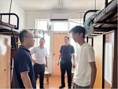 随后,领导老师们前往新生宿舍,实地查看了学生的居住环境。每到一处,领导老师们都细心询问新生的生活习惯是否适应、宿舍设施是否齐全,并亲自检查了空调、热水供应等生活设施的运行状况。他们主动与新生进行交谈,询问报到过程是否顺利、有没有遇到什么困难,并耐心听取了新生们对于学校生活的初步感受。领导们鼓励新生早日“融入beat365唯一官方网站,实现人生理想”,充分利用学校的资源,为自己未来的学习生涯打下坚实的基础,鼓励他们珍惜在校时光,积极参与各类教学、实践活动,丰富自己的课余生活,努力成长为德智体美劳全面发展的优秀人才。领导老师们的关怀让2024级新生感受到了家的温暖,也为他们即将开始的大学生活注入了满满的动力。