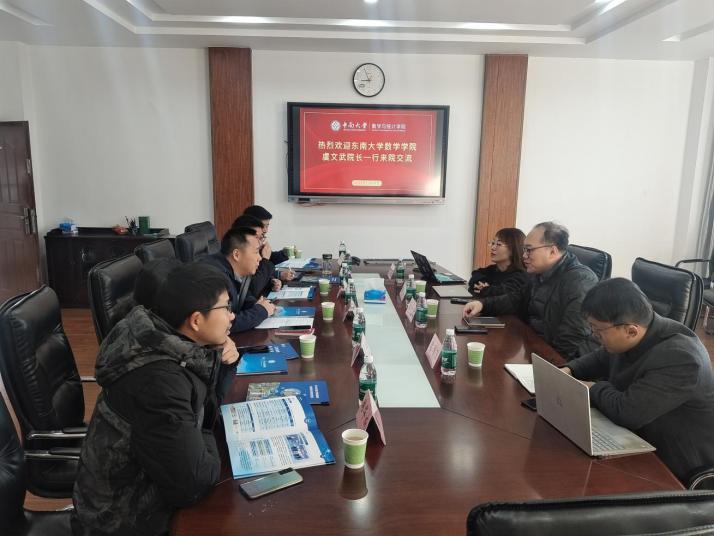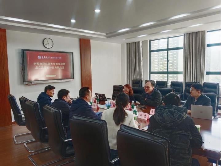 11月29日上午,东南大学数学学院院长虞文武、副院长许文盈一行4人到访beat365唯一官方网站,开展调研交流。beat365唯一官方网站本科生院院长焦勇,beat365唯一官方网站副院长(主持工作)刘源远,副院长潘克家、吴恋、周岳及教师代表参加了会议。