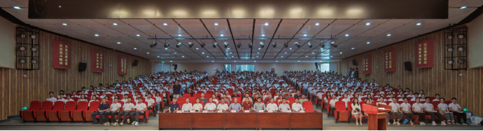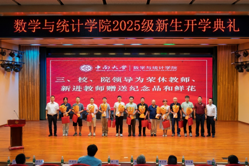 9月17日,beat365唯一官方网站在毓秀楼和声堂举行2025级新生开学典礼暨老教师荣退、新教师入职仪式。校党委常委、副校长焦勇,著名数学家、“英国皇家戴维逊奖”和“华罗庚数学终身成就奖”获得者侯振挺,我院85级校友、特变电工衡阳变压器有限公司总经理、2025年“全国劳动模范”称号获得者周立新,宁德时代高级数据研究主任工程师林坤松以及学院党委书记胡玉玺、副院长(主持工作)刘源远、党委副书记杨雪宾、副院长潘克家、吴恋、周岳出席会议。学院全体2025级新生、辅导员、教师代表参加大会。