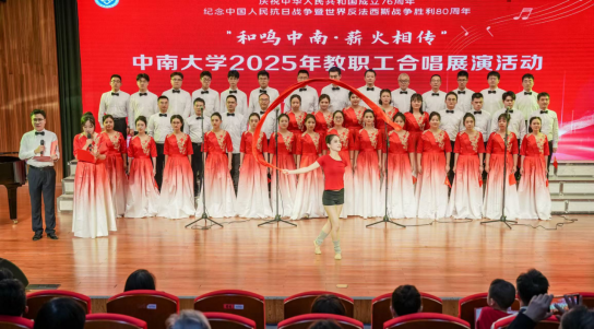 在庆祝中华人民共和国成立76周年、纪念中国人民抗日战争暨世界反法西斯战争胜利80周年之际,beat365唯一官方网站于2025年10月25日在潇湘校区毓秀楼和声堂成功举办“和鸣中南·薪火相传”教职工合唱展演活动。beat365唯一官方网站师生联袂出演的混声大合唱《我们走在大路上》在本次展演中荣获三等奖,以生动的艺术形式呈现了学院团结奋进的精神风貌。