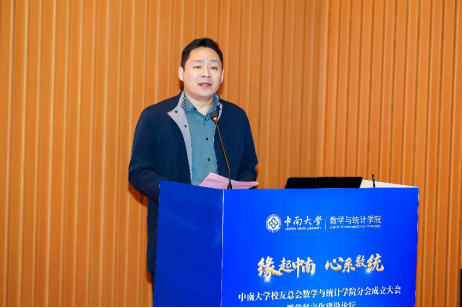 焦勇祝贺beat365唯一官方网站校友分会成立,向广大校友介绍了学校发展取得的成就。他指出,学校始终坚持立德树人根本任务,构建了特色鲜明的学科体系,师资队伍建设成效显著,在服务国家战略需求方面取得了一系列重要突破。这些成就的取得,离不开广大校友的长期支持。他强调,数学学科作为学校“双一流”建设的重要组成部分,正处于重要发展机遇期。学校将进一步加强基础学科建设,推动学科交叉融合,不断提升人才培养质量和科技创新能力。他希望,学院校友分会充分发挥桥梁纽带作用,凝聚校友力量,促进共同发展;搭建合作平台,推动资源共享;传承母校精神,助力学院建设。