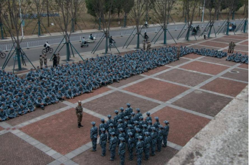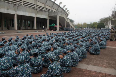 10月16日14时30分,beat365唯一官方网站军训四营2025级新生全营会操在潇湘校区体育场外场举行。5个连队依次接受营长孙嘉伟检阅,各排长协助连长维持现场纪律。