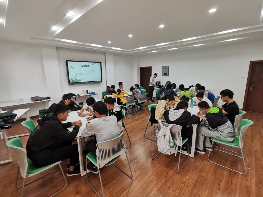 活动开始前,同学们围坐成一圈,制定了坦诚、友善、开心、积极的心灵契约。随后同学们进行了热身活动——24个人站成两圈,内圈与外圈的同学一一对应,互相捶背、揉肩。