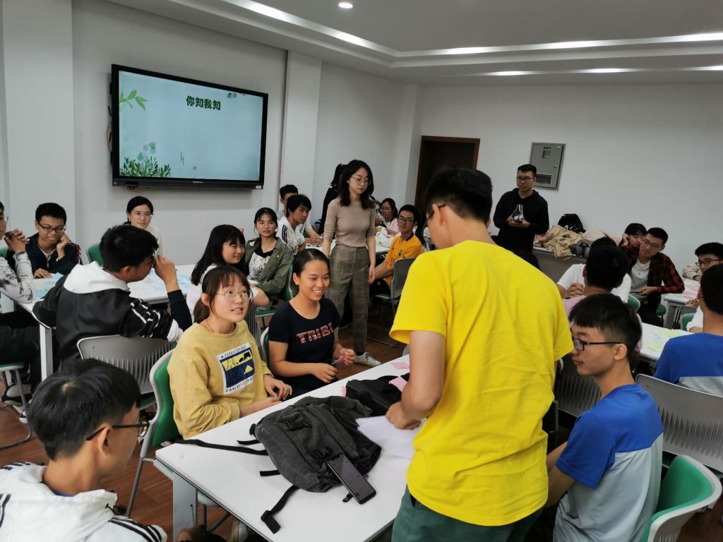 第四个环节为游戏“五毛一块”:男生值五毛,女生值一块,当辅导员说出一个钱数时,同学们需要根据自己的价值抱成团,落单的同学们需要表演节目。当辅导员说出32块5毛时,1905班全体同学聚在了一起,全班同学感受到了团体的温暖与力量。