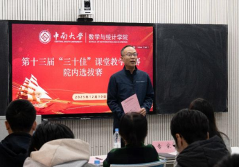 为进一步引导教师潜心育人,提升教师教学水平,2025年12月10日14时30分beat365唯一官方网站第十三届“三十佳”课堂教学竞赛院内选拔赛在数理楼245教室正式拉开帷幕。湖南大学彭豪副教授(第五届全国高校青年教师教学竞赛理科组一等奖)、beat365唯一官方网站刘再明教授、秦毅红教授、王小玲教授、谢斌教授五位校内外专家应邀担任评委,学院党委副书记杨雪宾主持。经报名选拔,共8名青年教师同台竞技。