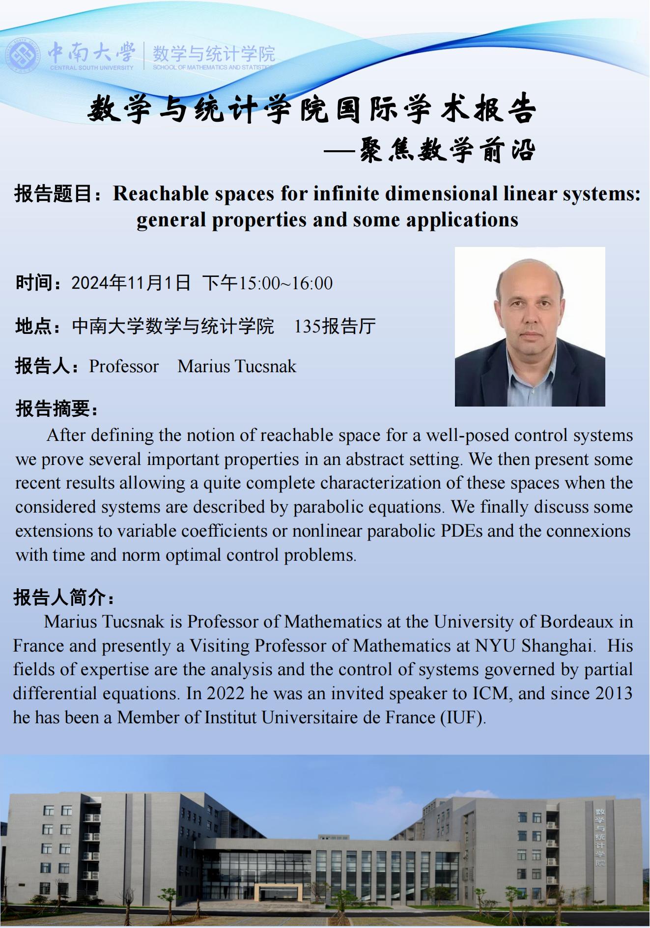 Marius Tucsnak教授学术报告